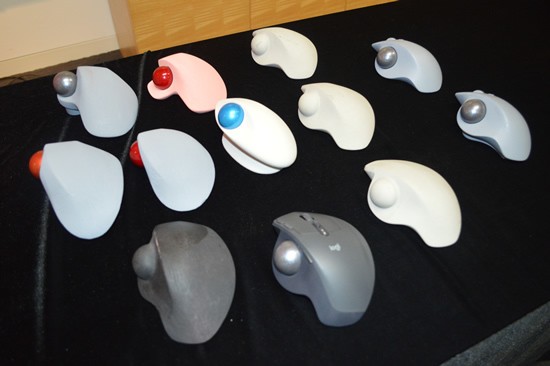 発表会では最終形に至るまでの試作品模型も公開された。肝であるヒンジの傾斜だけでなく、握り心地やボールカラーも最良を目指して試行錯誤が重ねられたという。