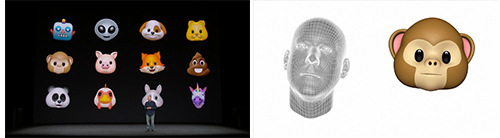 また、絵文字の進化形として、TrueDepthカメラと顔認証機能を活用し、インカメラに向けた自分の顔の表情にあわせて、「犬」などの動物などのアイコンがユーモラスに動く新機能「アニ文字」を開発。iOSのメッセージアプリでは、全12種類の「アニ文字」を入れて楽しくやりとりできる。