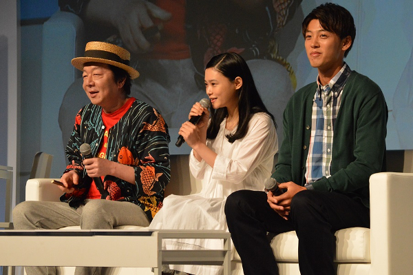 左から新CMに出演する古田新太さん、杉咲 花さん、竹内涼真さん