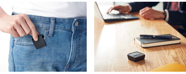 携帯性に優れた正方形デザインで、自然にさりげなく録音できる