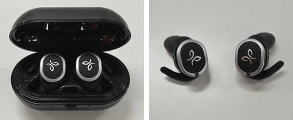 充電ケースは手のひらサイズで前方のボタンを押すと蓋が開く。本体のインターフェースは「Jaybird」のエンブレムが刻まれた表面部のボタン。左右で機能が分かれており、左側は1秒で音声アシスタント「Siri」もしくは「Google Assistant」の起動、右側は1秒で再生/一時停止/受話/終話、2秒で曲のスキップ/着信拒否、3秒で電源オン/オフ、6秒でペアリング接続となる。