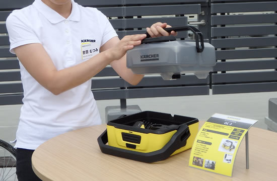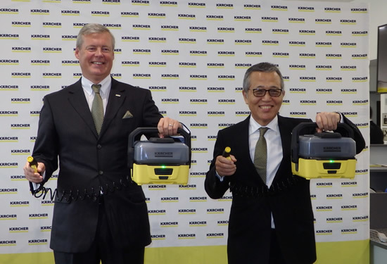 ケルヒャー ジャパンは9月22日に開催した新横浜の新社屋オープンに合わせて、来春発売予定のモバイル洗浄機「OC 3」とスティッククリーナー「KB 5」を披露した。価格はオープンで、税別の実勢価格は「OC 3」が2万円前後、「KB 5」が1万円前後の見込み。