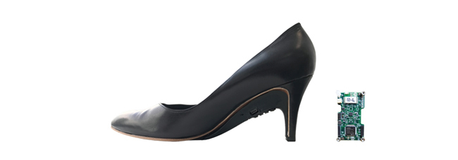 スマートヒールは、モーションセンサとBLE(Bluetooth Low Energy)を備えた、ハイヒール型のIoTデバイス。ハイヒールの歩き方を改善するための実用的なデバイスとしては世界初の製品で、センサ値から適切な歩行指導を行うアプリと組み合わせることで、ユーザーが自分自身の歩き方を確認・評価できる。歩行指導アプリの診断・指導アルゴリズムはジャパンヘルスケアが担当し、デバイスの開発はno new folk studioが行った。