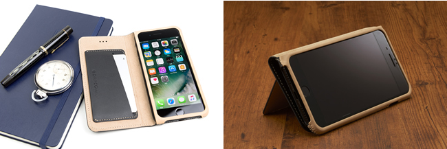 フリップの内側には、交通系ICカードなどを入れられるポケットを用意。カードポケットはスタンドとしても利用でき、iPhoneのカメラを保護するよう革の厚みが計算されているので、テーブルなどに置いてもレンズが傷つかない。