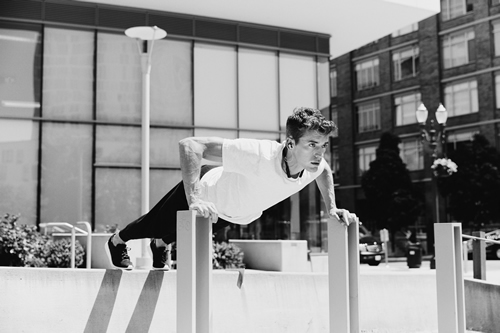 “ALL DAY ACTIVE”をコンセプトに、日常シーン、アクティブシーンどちらにも馴染むデザイン。流線型のネックカラーは、首周りに沿うようにフィットし、スポーツやトレーニングといった激しい動きでもズレることなく使用可能で、イヤホンを耳から外してもぶらつきや絡まりがない。