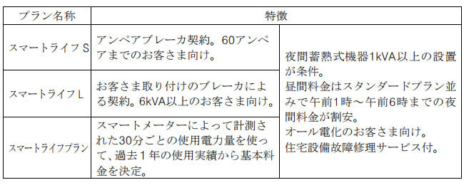 オール電化住宅向け新料金プラン「スマートライフS/L」の特徴
