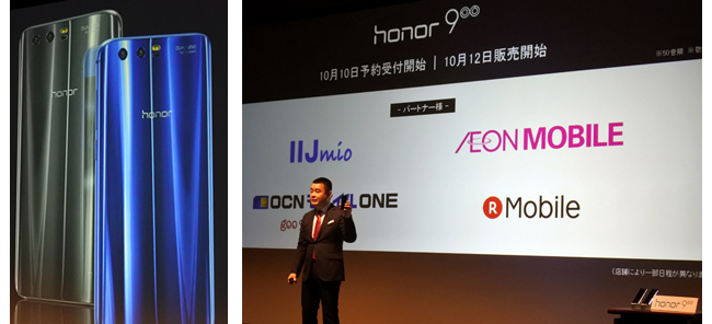 ファーウェイ・ジャパンは、ローライトに強い独自のダブルレンズカメラを搭載し、若者をターゲットにしたSIMフリースマートフォン「honor 9」を10月12日に発売する。