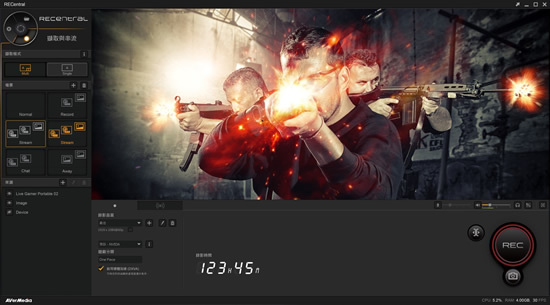 配信・録画ソフト「RECentral 4」は、64ビットOSにネイティブ対応するとともに、ユーザーインターフェースを一新し、従来バージョンと比較してCPU使用率を20%以上削減した。ハードウェアエンコード対応のゲームキャプチャとの組み合わせ時に、ゲーム画面録画・配信の際のCPU使用率をさらに抑えられる「シングルモード」も用意する。