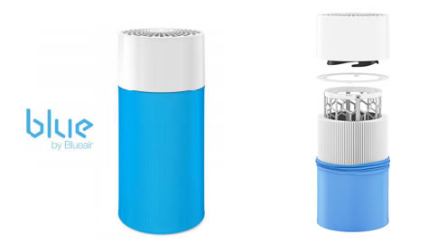 2016年9月に発表した「Blue by Blueair」シリーズの最新モデルという位置付けで、360°の吸引機構や上部の吹き出し口、ワンボタンのインターフェースなどは共通。デザインはキューブ型ではなく、直径200mmの円筒形。最大22m2(13畳)まで対応し、一般的なワンルームの住居であれば十分にカバーできる。