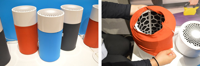 ホコリなどの大きな粒子を除去する脱着可能・水洗いOKなプレフィルターもユニークだ。本体のフィルターに被せることができ、室内のインテリアに応じて使い分けられるように、3色のカラーバリエーションを用意する。製品には付属するプレフィルターはディーバブルー。サフロンレッドとダークシャドウは税別1000円で購入可能だ。