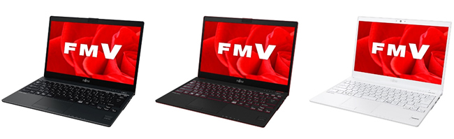 LIFEBOOK UHシリーズはスペックが異なる3機種を用意し、11月16日に発売予定。カラーは「UH90/B3」がピクトブラック、「UH75/B3」がピクトブラックとサテンレッド、「UH55/B3」がアーバンホワイト。税別の実勢価格は16万円強から21万円前後の見込み。