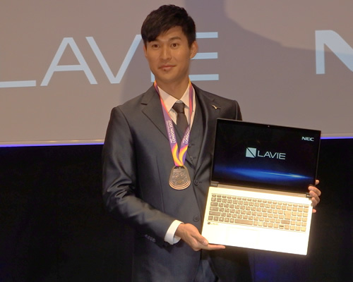 トークセッションでは所属するスポーツメーカーのミズノでも毎日、NECのノートPCを使っていると披露。「練習の動画確認やスケジュール管理に使っている」と日々のトレーニングに欠かせないツールのひとつであることを語った。