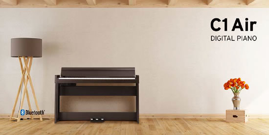 心地よいタッチで弾けるRH3鍵盤、ハーフ・ペダルにも対応する3本のペダル、大迫力のスピーカーを採用し、最新技術でグランドピアノの響きを忠実に再現。鍵盤から本体の組み立てまで京都府南丹市美山町で行っている信頼の日本製で、奥行き26cmのスリムデザインと印象的な脚部、ブラック、ホワイト、木目仕上げのブラウン、レッドの4色のカラー展開で、「C1 Air」ならではの個性をアピールする。
