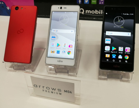 arrows M04 PREMIUMは「arrows M04」のハイスペックモデル。メモリはRAM3GB、ROM32GBとなり、RAM2GB、ROM16GBだったarrows M04と比べるとそれぞれ1.5倍、2倍の大容量になった。また、米国国防省が定めたMIL規格23項目に準拠するなど、様々な耐久試験をクリアした富士通独自の堅牢設計となるタフネスボディモデルとなる。カラーバリエーションはレッド、ホワイト、ブラックの3種類で、10月26日に発売する。
