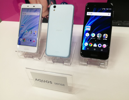 AQUOS senseは超高精細5.0インチフルHD IGZO液晶を搭載。こちらもRAM3GB、ROM32GBを登載しつつ、ホームキーを指紋センサーとすることで使いやすさの向上を実現した。カラーバリエーションはエアリーブル―、シルキーホワイト、ベルベットブラックの3種類で、11月下旬に発売予定。 (BCNメディア編成部)