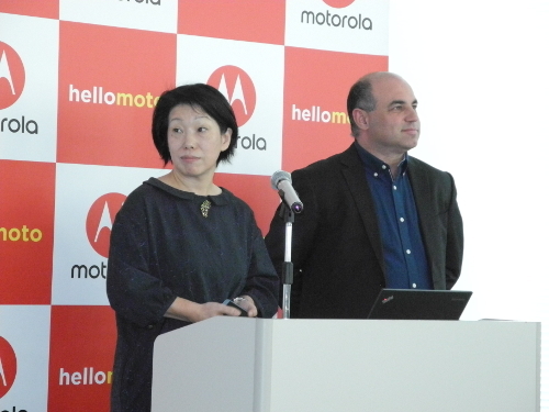 登壇したモトローラ・モビリティ・ジャパンのダニー・アダモポウロス代表取締役社長と、