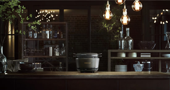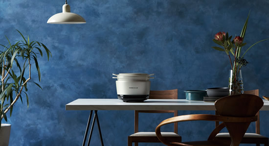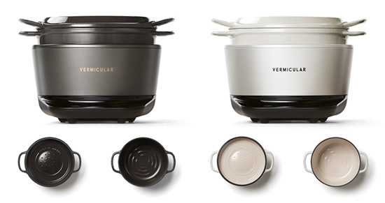 2016年12月に発売した「バーミキュラ ライスポット」は、炊飯のために進化した鋳物ホーロー鍋と、自動での火加減調節が可能な熱源を組み合わせた、鍋炊きごはんのおいしさを手軽に楽しめる炊飯器。炊飯だけでなく、無水調理、ロースト、炒め調理、スチームなど、さまざまな調理に対応する。