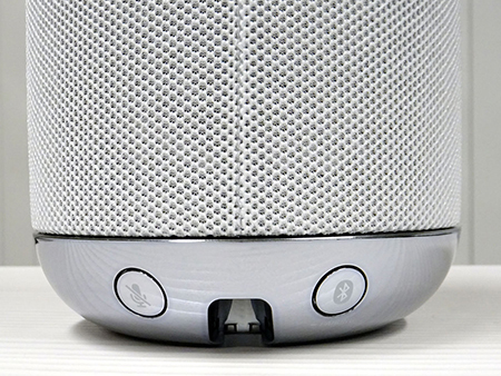 マイクミュートとBluetoothペアリングのボタン。底面にはデジタル時計の明るさ切り替えボタンがある。