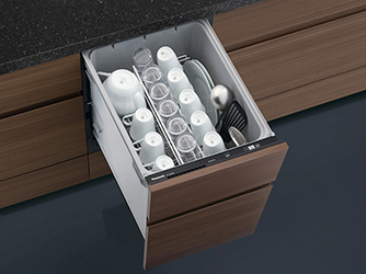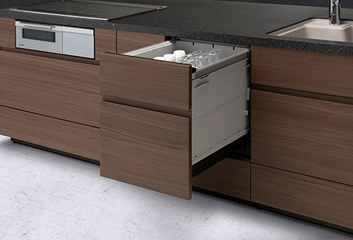 システムキッチンと美しく調和するドアフル面材型のフルインテグレートモデル(Kシリーズ)と、ハイグレードタイプ(Mシリーズ)の2シリーズを同時に発売。Kシリーズの最上位機種「NP-45KD8A」は、ノック2回でドアが自動でフルオープンする新機能を盛り込んだ。手で取っ手をつかむ行為が不要になるため、食洗機のドアが汚れず、キッチンでの作業性が向上する。