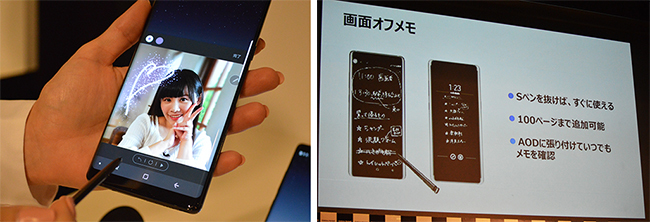今回、新機能として、書いた文字の軌跡をGIFファイルとして保存できる「ライブメッセージ機能」を搭載。また、画面をオンにしなくてもSペンを取り出すだけで画面にメモを取れる画面オフメモ機能も備える。