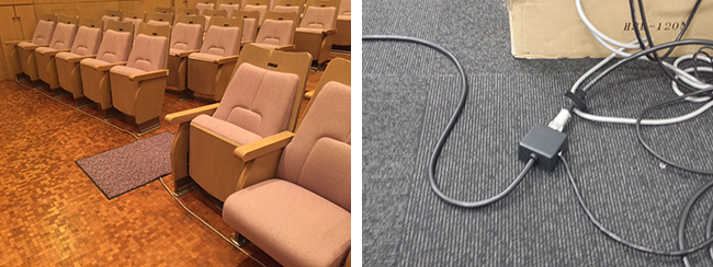 マットの下にはループアンテナの配線ボックスが隠れており、ケーブルがホール全体に張り巡らされている