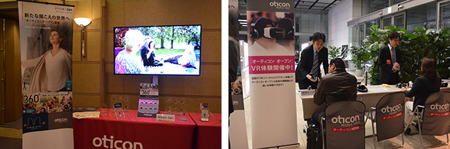 オーティコン補聴器の展示ブースとVRによる疑似体験コーナー