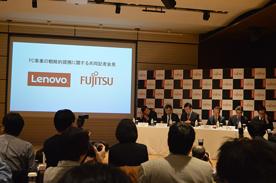 富士通とレノボグループは、11月2日、合同で緊急記者会見を開催し、日本政策投資銀行(DBJ)を含めた3社でPC事業の合弁会社を設立すると発表した。