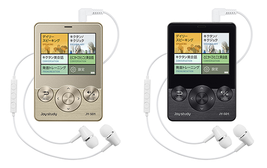 学習の進捗状況は画面上で視覚的に確認することが可能。リモコンとマイクを備えた専用イヤホンが付属する。サイズは幅66×高さ12×奥行き95mmで、重さは約85g。バッテリ駆動時間は約10時間。カラーは、シャンパンゴールド、ブラックの2色。税別の実勢価格は2万円前後の見込み。