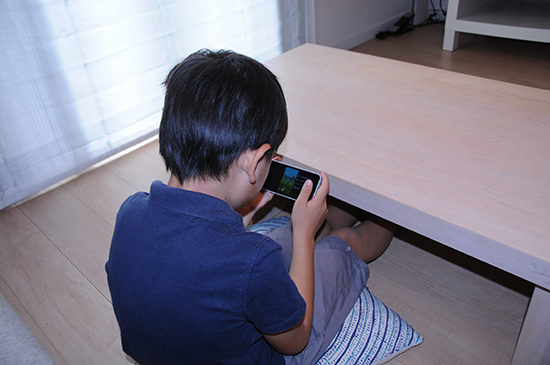小学2年生ともなると、親のスマートフォンを使って自分で音声アシスタント機能を駆使して、いろいろなコンテンツを検索する。記者のスマホの画面サイズは4インチと小さいので、顔をスマホの画面に近づけないとみづらく、YouTubeなどの動画を見ているときの息子の姿勢が気になっていた。同じように、ソファに寝そべりながら見ているのが気になっている家庭も多いのではないだろうか。