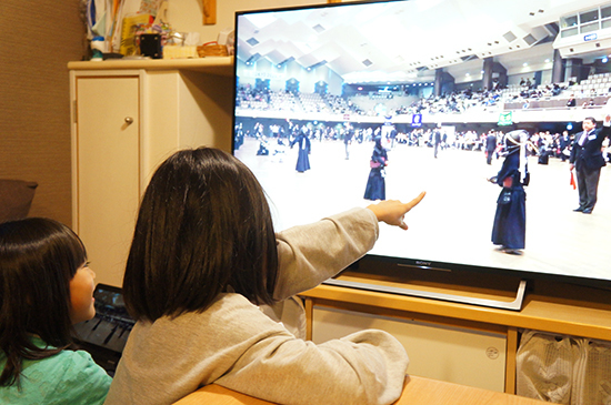二番目の家族は、小学4年生と2年生の二人の娘さんと奥様の4人家族。二人の娘さんは剣道に打ち込んでいて、父親も若い時から剣道を続けている剣道一家に「ブラビア 55X8500E」が運ばれてきて、何が変わったのだろうか。やはり驚いたのはフルハイビジョンの4倍の解像度をもつ4Kテレビのきれいな画質だ。過去に記録した試合を見てみたところ、これまでは剣道の面の奥の表情までは見えなかったが、「ブラビア 55X8500E」では顔の表情までわかったことに家族全員がびっくりしたそうだ。