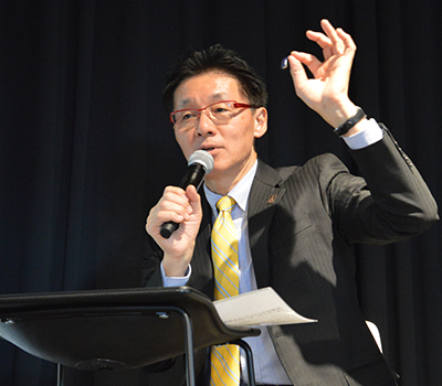 セッションの前半では、木下プレジデントが補聴器の現状とオーティコンの次世代補聴器「opn」について説明。「カッコ悪い」「活発でない」「疎外されている」といったネガティブなイメージが先行して、本当は試したいが、まわりの目を気にして装着していないという人は多いという補聴器だが、実は最新のテクノロジーで従来の印象が払拭されつつあるという。