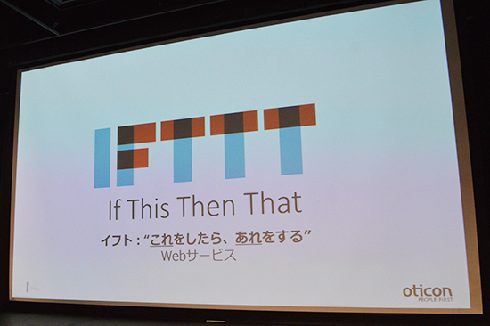 「Opn」のもう一つの大きな特徴は、インターネットにつながるということだ。その肝になっているのが、「IFTTT(イフト)」というWebサービス。「If This Then That(これをしたら、あれをする)」の頭文字で、その言葉通り、あるアクションがインターネットを経由して、異なるアクションに連携するという仕組みだ。