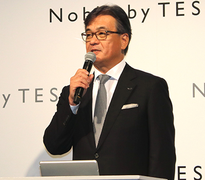 11月9日に開催した発表会で、テスコムの楠野寿也代表取締役は「『Nobby by TESCOM』の発表をもって、新生テスコムとして生まれ変わる」と前置きし、「多様なライフステージを生きるさまざまな女性たちそれぞれに『あなたはもっとキレイになれる』というメッセージを込め、新たな活動指針には『ひとりひとりにBeautiful Surprise』に定めた」と宣言。「驚きを届けるには、時代をけん引する製品の開発が求められる」と、新ブランド立ち上げの経緯を語った。
