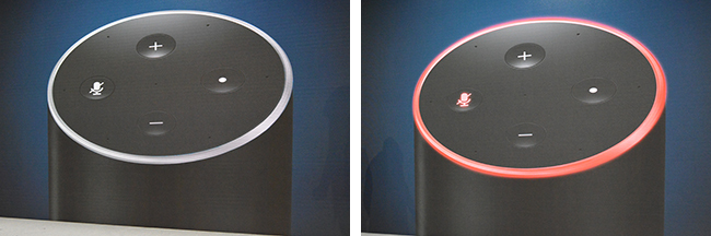 ローンチ時に256スキルを用意し、各社からさまざまな連携サービスが提供される。アイテムの性質上、常に起動している必要があるため、プライバシーを危惧する声もあるが、その心配にもテイラー氏は「No Program」と太鼓判を押す。本体上部にはミュートボタンを備え、声を認識されたくないときは遮断できる。そのスリープモードも「Alexa」と呼びかければ即座に解除される。また、Alexaに蓄積された情報は自分で消去することもできる。