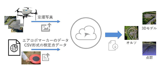 「エアロボ測量」ソリューションパッケージのワークフロー