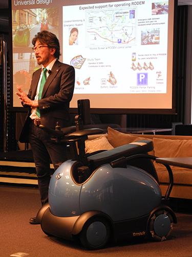 RODEMは「質の高い生活を、すべての人に」をコンセプトとし、誰もが暮らしやすい社会を実現したいとの想いで開発された次世代型スマートモビリティ。時にはロボット、時には乗り物、時には車いすとしての役割を1台で果たし、介助者・被介助者双方の負担を軽減する。テムザックは2009年に発表した車いすロボットの開発を続けており、福祉国家であるデンマークでの実証実験などを経て、ようやく今回の発表に至ったという。