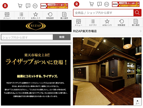 「RIZAP 楽天市場店」がオープン、楽天からの入会でポイントもゲット