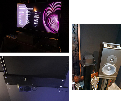 「ドルビーアトモス 7.1.4.サラウンドデモルーム」の設備(一部)。サウンドデモ後の質疑応答は、