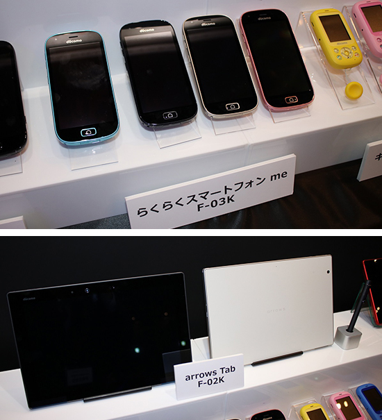 「らくらくスマートフォン me F-03K」(上)と、「arrows Tab F-02K」