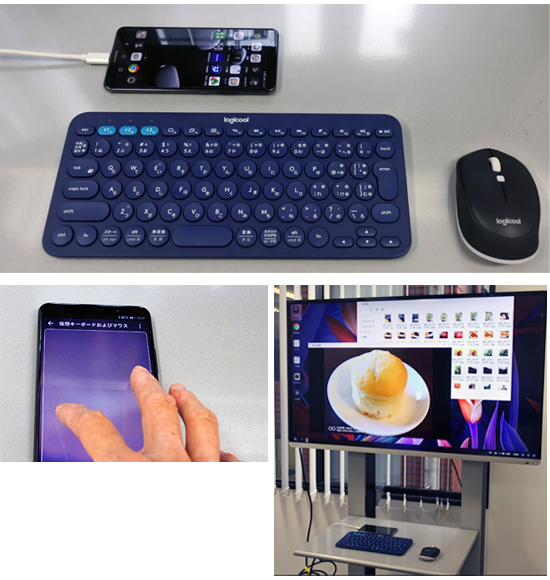 デスクトップモードでは、Bluetoothマウスや、スマホの画面をタッチしてカーソルを動かしたり、