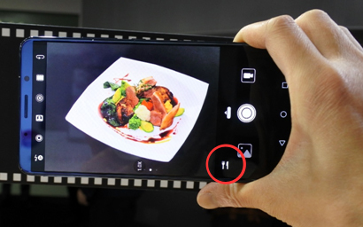 瞬時に「フードモード」をセレクトし、右下にアイコンが表示された