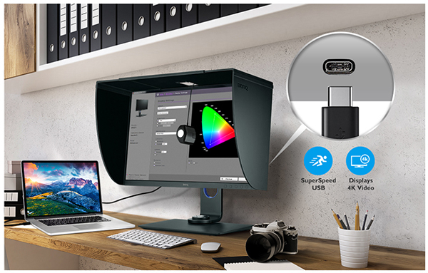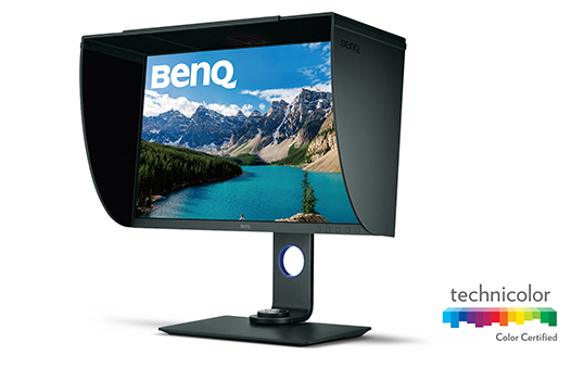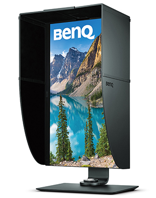 BenQ のHDR対応27型4K UHDディスプレイ「SW271」(遮光フード装着時)