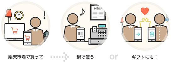 ユーザーは、「楽天市場」の「楽券」導入店舗ページで事前にデジタルチケットを購入し、楽天会員ページ内の「楽券マイページ(my楽券)」上に表示される「楽券」画面を実店舗で提示して認証を受け、購入済み商品と引き換える。通常の買い物同様、「楽天スーパーポイント」が貯まり、「楽券」はメールなどで家族や友人などにギフトとして送ることも可能だ。一回券に加え、回数券にも対応。ポイント獲得、現金不要という点で、ユーザーにとってもメリットがある。