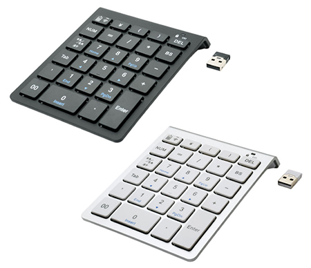 ナカバヤシグループのミヨシは、ワイヤレステンキーボード「2.4GHz接続ワイヤレステンキー TEN24G01」を12月中旬に発売する。カラーは、ブラック、シルバーの2色。価格はオープンで、税込の実勢価格は3800円前後の見込み。