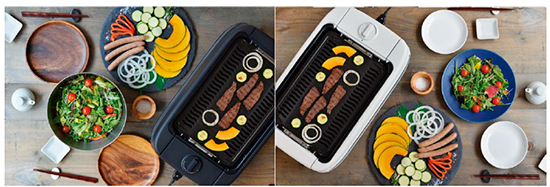 吸煙グリルは、換気扇などに使用されているシロッコファンを内蔵し、発生した煙を逃さず吸煙して、グリル内で循環させることで消滅させる。また、煙の出にくいカーボンヒーターを搭載。食材を遠赤外線で暖めることによって、外部ではなく内部から焼けるので煙が出にくく、余分な油は油受けに落ちるため、うまみを閉じ込めつつ、よりヘルシーに焼くことができる。