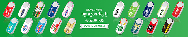 2016年12月に、洗濯用洗剤やシャンプー、シリアル、おむつ、ペットフードなど、40種類以上の日用品ブランドを取り揃えてスタート。日本での発売開始1周年を迎え、ラインアップを拡大。紙おむつでは、これまで提供していたムーニー、ネピアGenki!に加え、パンパース、グーン、メリーズを追加。飲料カテゴリでは、伊右衛門、十六茶、ボス、ワンダ、野菜生活などの新ブランドを追加した。Amazonの調べによると、Dash Button購入者は平均で2.8個、所有しているという。