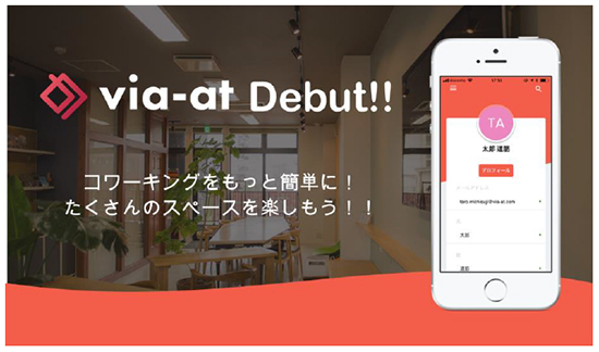 via-at(ヴィアート)は、専用アプリをインストールしたスマートフォンをかざすだけで、店舗やカフェの空きスペースをコワーキングスペースとして簡単に利用できる、新しいかたちのスペースシェアプラットフォーム「via-at」を開始した。