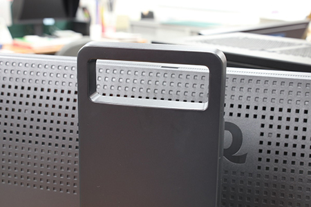 ベゼルは、反射が少なく正しい色表現に影響のないナチュラルグレーカラーで、ウルトラスリムベゼル設計を採用している。「ベゼルが細いため、ディスプレイを2枚並べた際に画面同士が近く、使いやすいだろう」と分析する。
