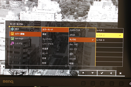 さらに「SW271」は、モノクロモードを搭載することで、画像をモノクロに編集してしまう前に、手軽に編集後の様子を確認できる強みを持つ。モノクロモードには白が強い、黒が強い、その中間の3段階を用意。ホットキーパックにそれぞれセットしておけば、ワンタッチでコントラストを切り替えながら加工後の雰囲気を把握できる。大星氏は「普段からモノクロ写真をたしなむ人にはうれしい機能」とコメントする。