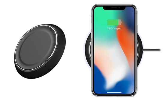 「iPhone X」など、Qi規格対応スマートフォンなどを置くだけで充電できる。充電中は本体のLEDが青色に点灯し、端末の位置がずれている場合や、ワイヤレス充電非対応の端末を置いた場合は赤く点灯する。なお、金属製ではない厚さが3mm程度のケースなら、端末に装着したままワイヤレス充電が可能。本体裏面には滑り止め加工を施している。